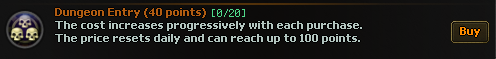 Allows purchasing up to **20 extra entries per day** in the store, progressive cost (40, 50, 75, 100).\