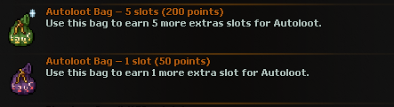 Unlocks **more slots in the autoloot system**, allowing you to configure more items to be looted automatically.