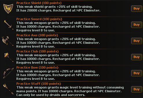 * **Recharge:** Can be recharged for **20k gold at NPC Elmister**, in **Casino Island,** or in the **upper floor of the Rookgaard temple,** for **5k gold.**