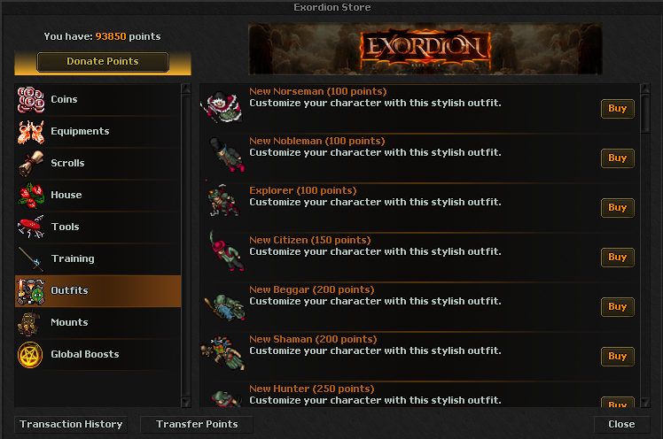 In the **Exordion Store**, you will find a **variety of items and services** to enhance your in-game experience.